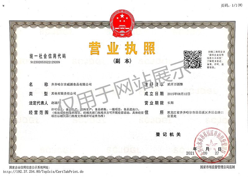 吉威源食品有限公司是齊齊哈爾著名企業(yè)集團華威集團有限公司全資新建的,企業(yè)占地18.2萬平方米,一期建成2萬余平方米生產(chǎn)及辦公區(qū)。有國內(nèi)一流先進成套生產(chǎn)設備近百臺套,組成自動化程度很高的生產(chǎn)流水線。安全、衛(wèi)生、環(huán)保配套設施齊全,全面達到國家有關標準要求。企業(yè)已經(jīng)全面完成一期建設,滿負荷產(chǎn)能將達到每年萬噸成品產(chǎn)出規(guī)模,投產(chǎn)后將成為拉動區(qū)域綠色種植業(yè)及養(yǎng)殖業(yè)發(fā)展的領軍型企業(yè)。